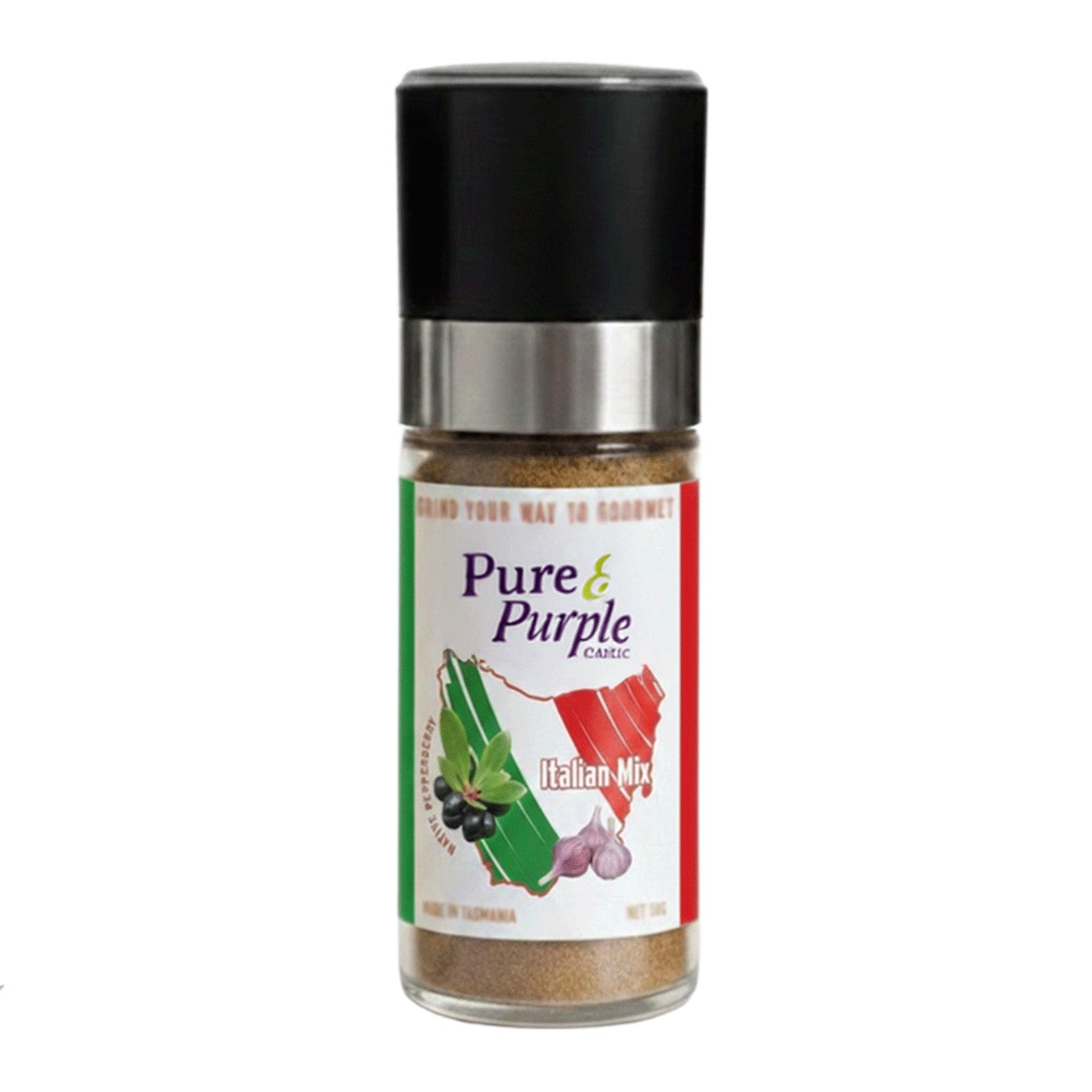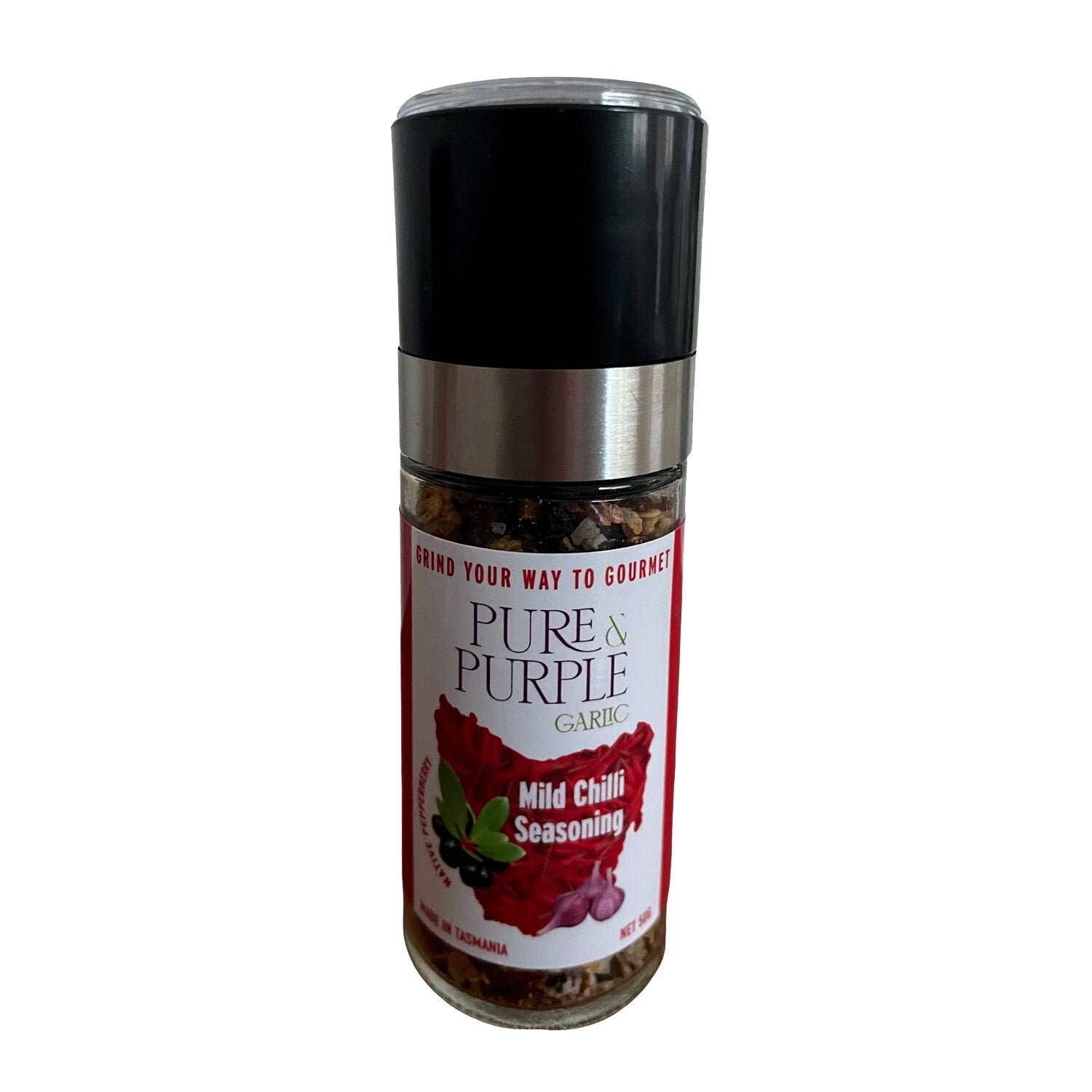 Ingredients: Tasmanian purple garlic, Tasmanian native pepper berries (including leaves), pure Australian inland salt and spices.